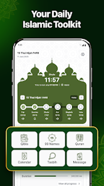 Belangrijke kenmerken zijn onder andere real-time gebedstijdalerts op basis van de locatie van de gebruiker, de mogelijkheid om dagelijkse gebeden bij te houden en een digitale Tasbih-teller voor het reciteren van dhikr. De app biedt ook een islamitische kalender voor het bijhouden van belangrijke gebeurtenissen en dagen. Met een lichte en intuïtieve vormgeving is het geschikt voor alle leeftijden en beschikbaar in meerdere talen, waardoor het een waardevol hulpmiddel is voor zowel beginners als ervaren moslims.